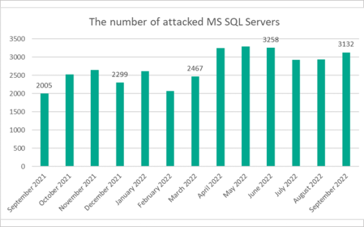 Attacks using Microsoft SQL Server increased by 56% in September 2022 compared to the same period last year. Perpetrators are still using